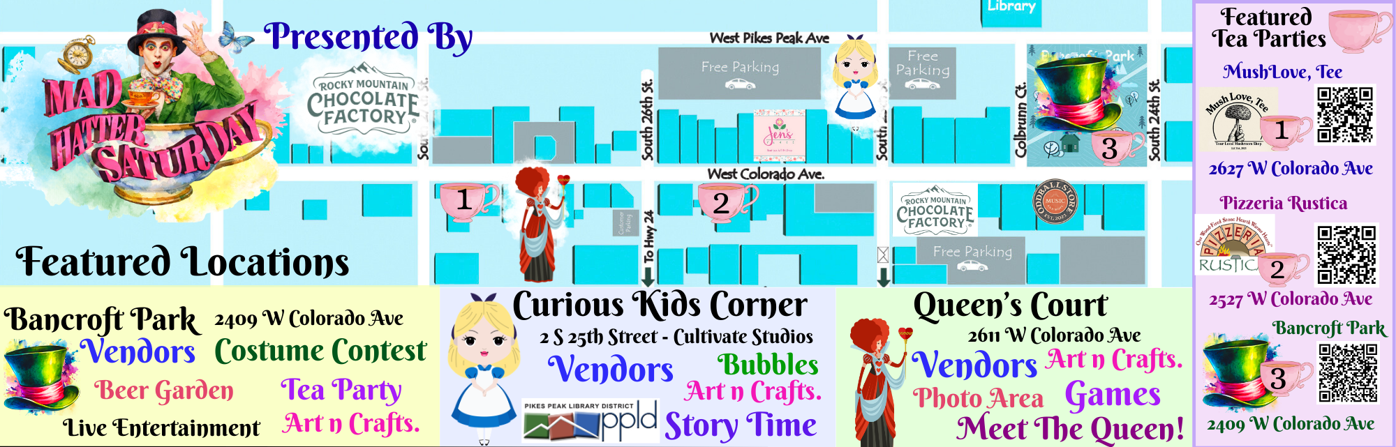 Step into a whimsical world of wonder as Old Colorado City transforms into an Alice in Wonderland dreamscape for The Mad Hatter Saturday!